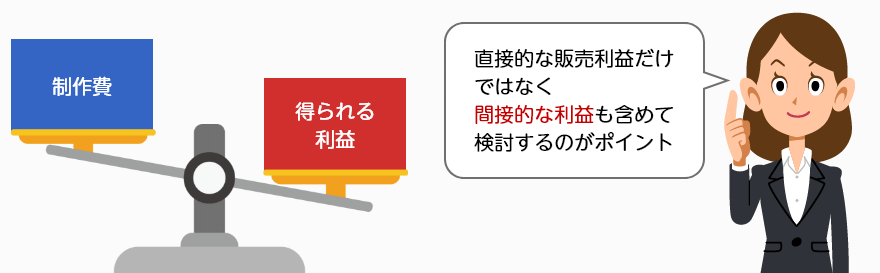 そのため、利益の見込みは、Webサイトによる売り上げだけではなく、Webサイトを持つことで得られる複合的な利益を加味して検討する必要があります。